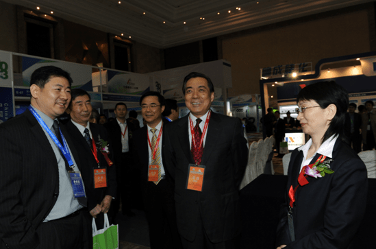 (下图一、图二为:中国石油和化学工业联合会会长李勇武,中国橡胶工业协会名誉会长范仁德先生、会长邓雅俐女士参观确成硅化展台)